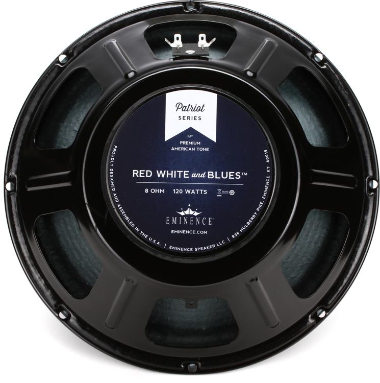 At 101 dB, it’s surely loud enough for any combo amplifier. The power handling of the Eminence Red White & Blues is 120 watts which means it will work in almost any sub-120-watt amplifier. This is a great speaker upgrade for a Marshall DSL40CR or Fender Hot Rod Deluxe. This would be a nice upgrade from the stock speaker in a Fender Blues Junior.